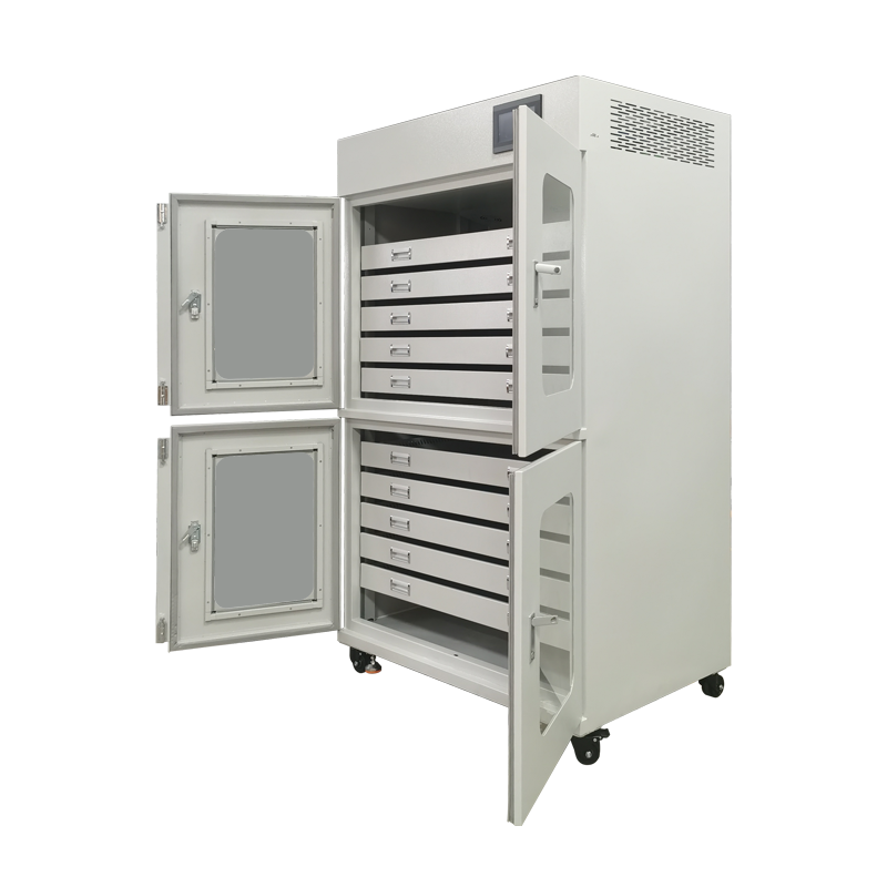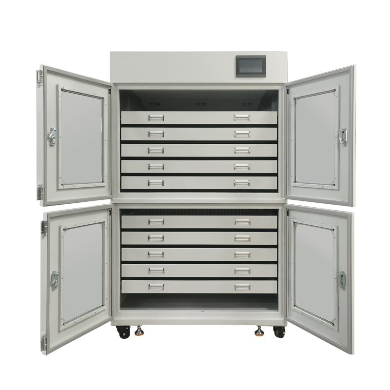 8、調(diào)濕模組和儲(chǔ)藏區(qū)有多重隔離,通過氣管連通,調(diào)節(jié)濕度過程對(duì)柜內(nèi)無(wú)熱效應(yīng)。注入到柜內(nèi)的空氣會(huì)被除濕模組凈化過濾,可以去除甲醛、硫化物、揮發(fā)性有機(jī)物等對(duì)藏品有害物質(zhì);
