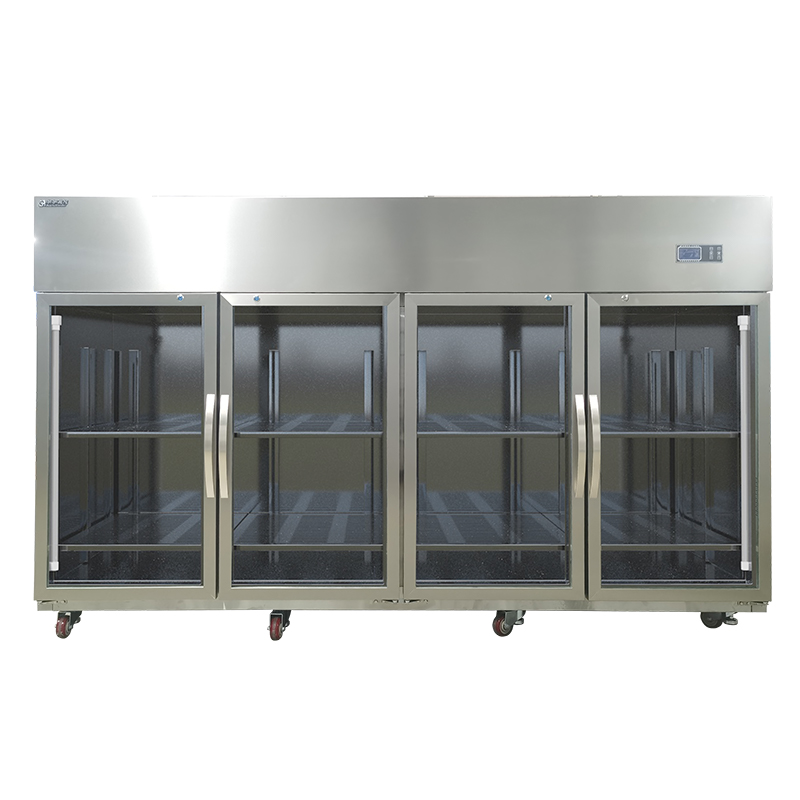 1、柜   門:采用優質雙層真空鋼化玻璃組成,確保柜體牢固。柜門裝有永磁密封膠條,確保柜內的密閉性;